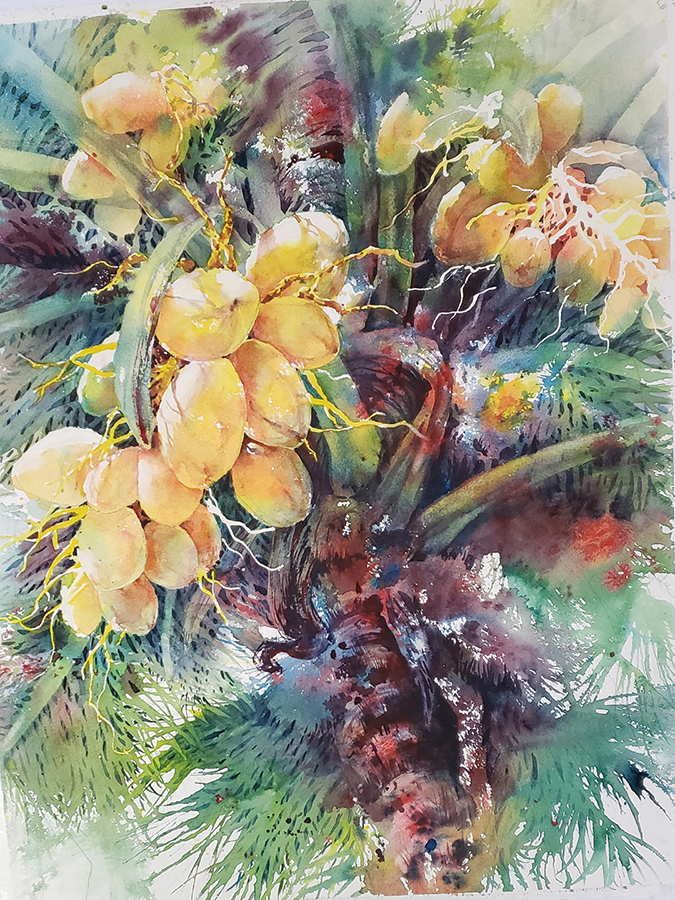 Coconut Tree Watercolor Tutorial : How To Paint Tropical Landscape